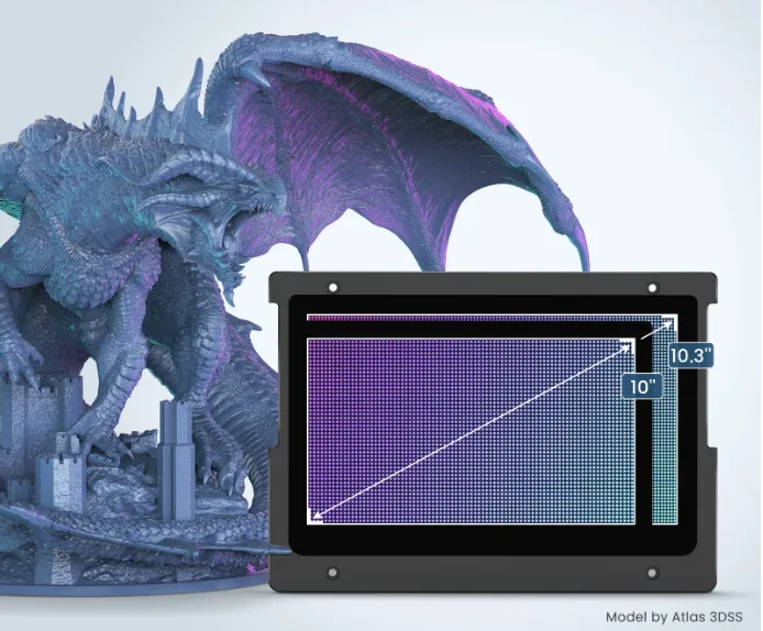 Разрешение монохромной матрицы с диагональю 10.3 дюйма составляет 7680x4320 пикселей, а точность по оси XY – 29,6 микрон.