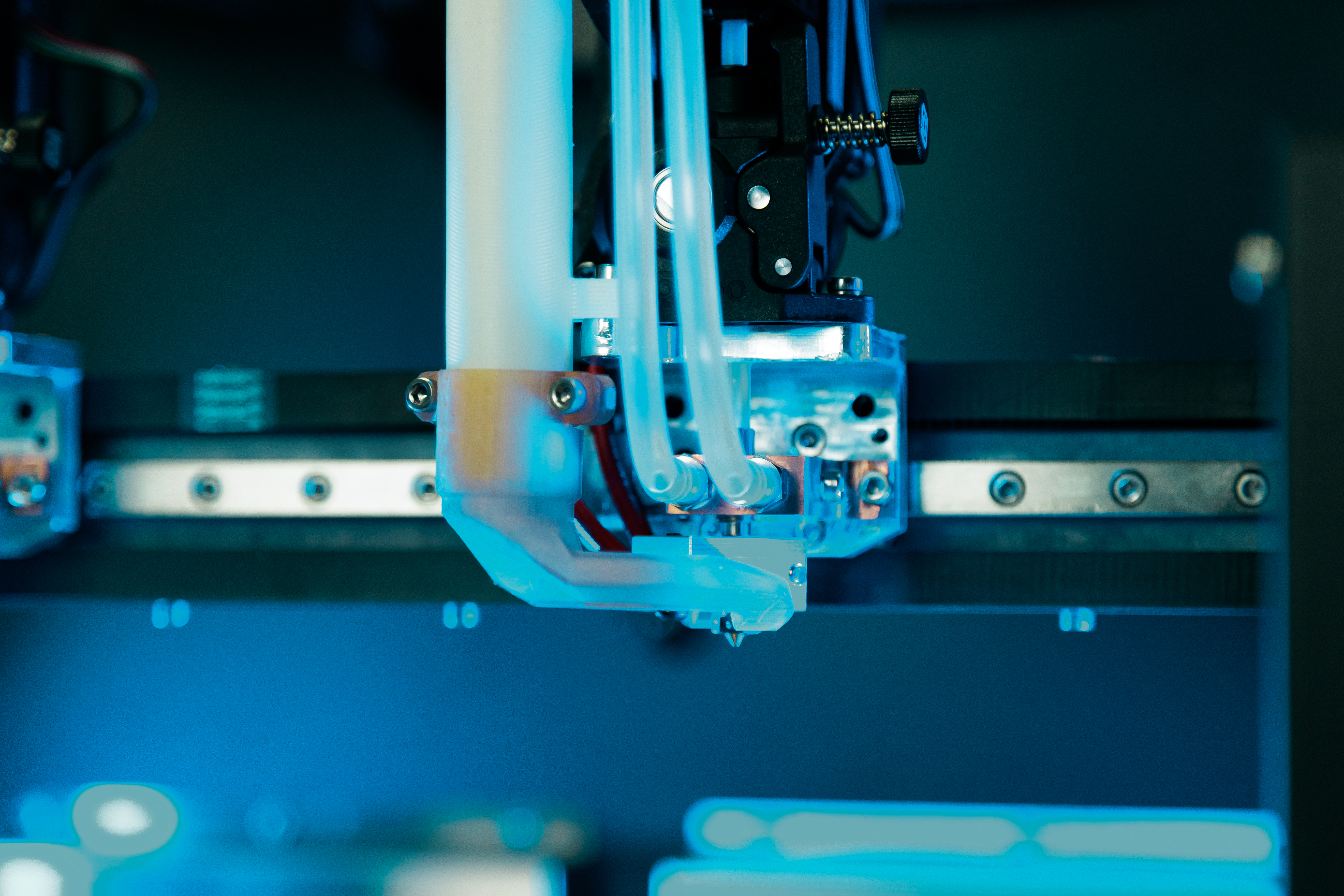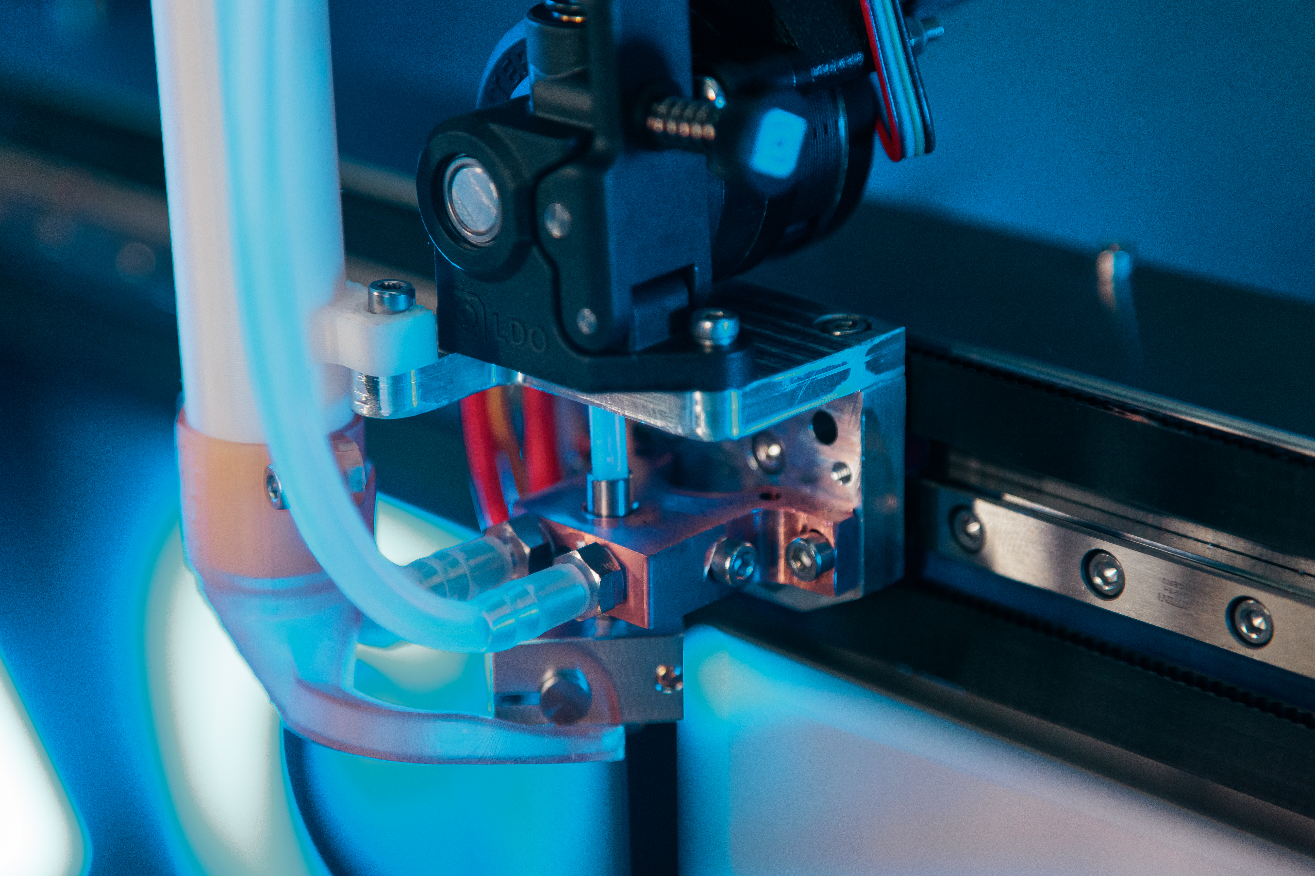 Наиболее эффективная из существующих систем двухэкструдерной печати. Позволяет работать в синхронном режиме, изготавливая несколько деталей одновременно.