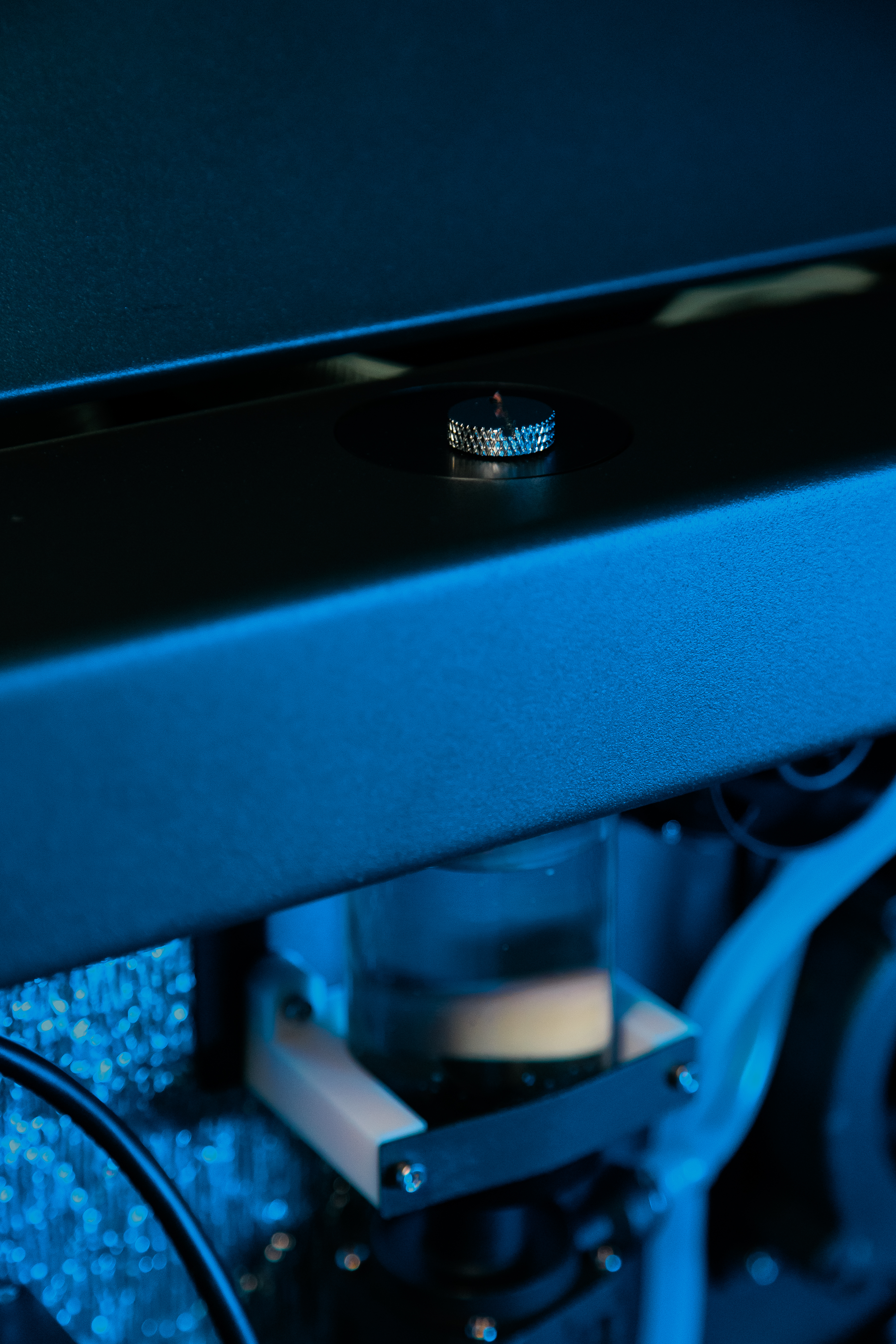 Центробежный вентилятор с объемным расходом 250 литров в минуту. Форсунка из термостойкого полимера, с возможностью замены на аналогичную из нержавеющей стали, изготовленную по технологии SLM печати.