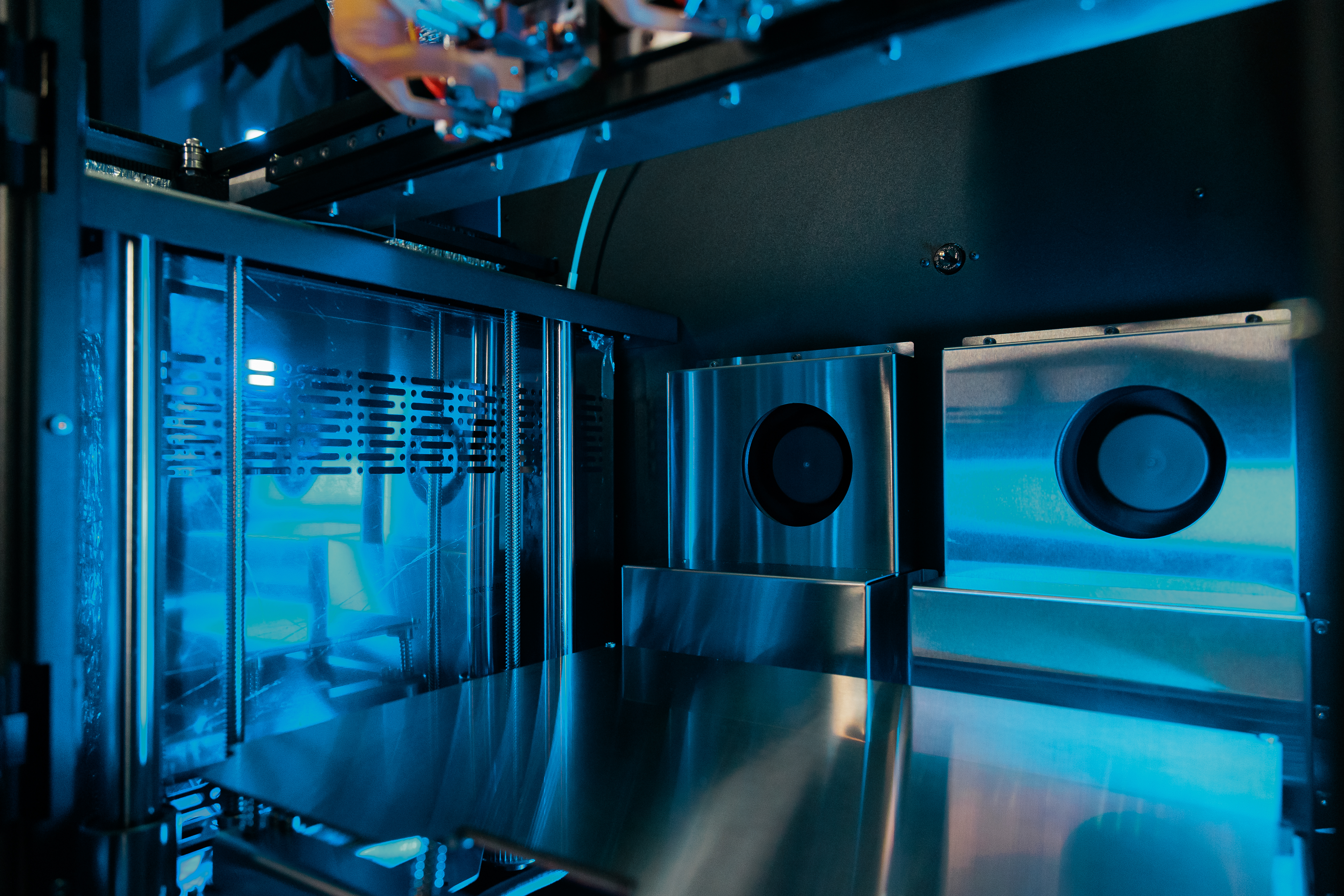 Для точной печати прочных и массивных деталей предусмотрена камера с прогревом, температура которой близка к температуре стеклования совместимых полимеров.