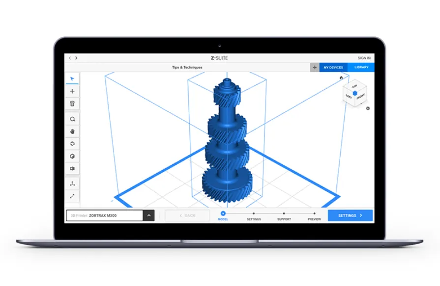 Собственное интуитивно понятное программное обеспечение Z-SUITE предлагает удобный интерфейс и широкий спектр инструментов для работы с принтером, с возможностью работать одновременно над несколькими проектами и сохранять выбранные профили.