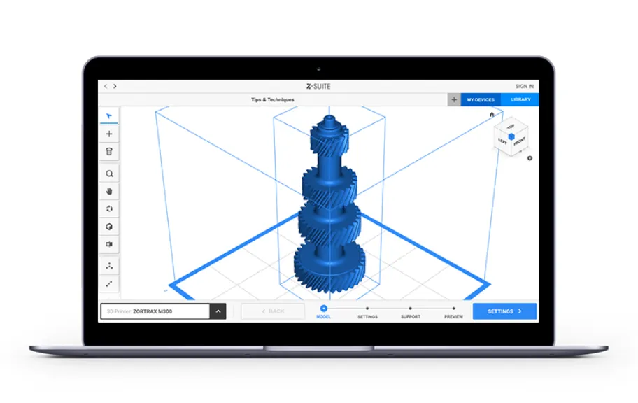 Принтеры Zortrax работают в собственной экосистеме, включающей специальное программное обеспечение Z-SUITE и ряд фирменных 3D-материалов для достижения различных свойств изделий. В новых версиях ПО производители добавили возможность печати материалами сторонних производителей.