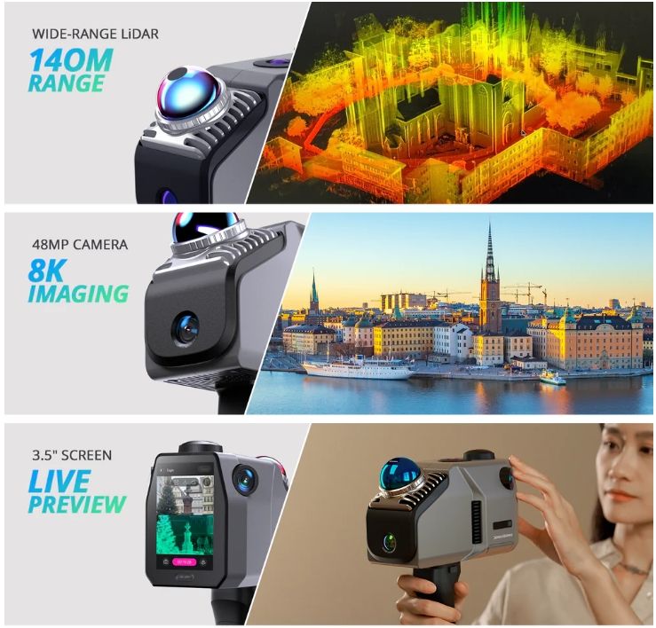 Технические преимущества включают в себя мощную LiDAR-систему и комплект из четырех камер с разрешением 48 мегапикселей каждая. Такое оснащение гарантирует получение максимально детализированных трехмерных изображений с превосходным качеством визуализации. Сканер станет незаменимым инструментом для специалистов, требующих высокой точности и скорости работы при создании пространственных моделей любой сложности.