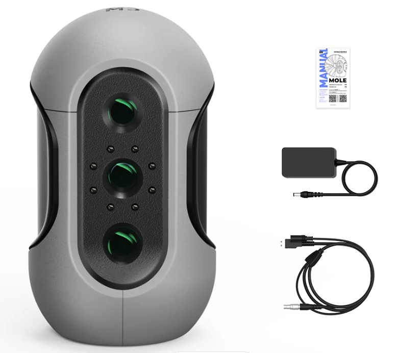 Профессиональное портативное оборудование для 3D сканирования - это 3D сканер 3DMakerpro Mole. Он обладает высокой точностью сканирования и способен захватывать даже самые мелкие элементы. Идеально подходит для работы с объектами среднего размера. Область сканирования 3D сканера Mole составляет 200х100 мм, что в сочетании с его скоростью сканирования до 10 кадров в секунду обеспечивает высокую производительность. Файлы данных могут быть экспортированы в несколько популярных форматов, таких как STL/OBJ/PLY.