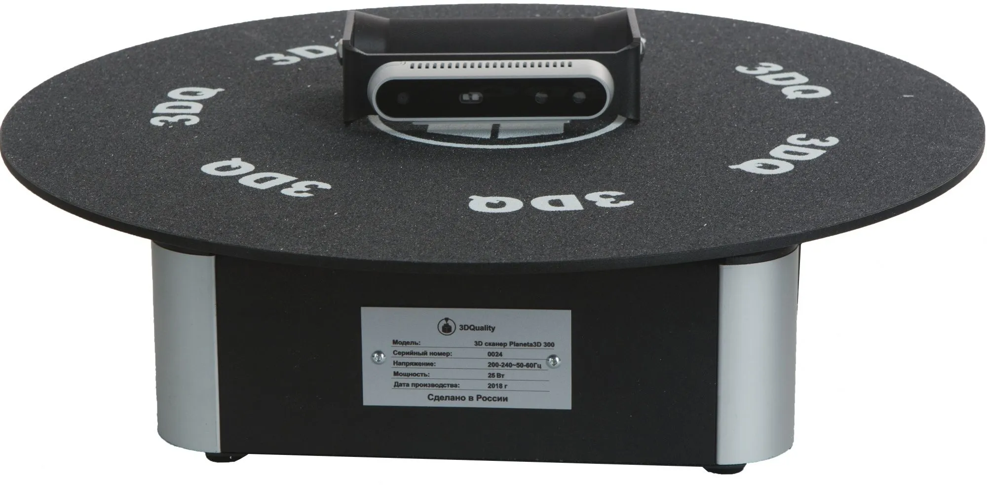 В комплекте поставляется поворотный стол D400 и программное обеспечение на русском языке. 3D сканер Planeta3D 300! Это оптический ручной сканер, который поставляется в комплекте с поворотным столом, диаметр которого составляет 400 мм. Стол управляется через WI-FI! Данная модель отлично подойдет для сканирования как среднегабаритных, так и крупногабаритных объектов. Она позволяет захватить объекты и площади до 4 квадратных метров, не требует абсолютно никакой калибровки! Planeta3D 300 имеет в комплекте свое собственное фирменное русскоязычное ПО, с функцией дальнейшей пост обработки, имеет возможность брать модель в цвете и отлично подойдет как для обучения и сканирования моделей с целью печати, так и для создания дополненной виртуальной реальности! Разрешение сканирования у Planeta3D 300 доходит до 768 вокселей, поддерживаемые форматы экспорта файлов: PLY, STL, OBJ, VMRL. То есть Вы можете отсканировать объект с помощью сканера, после чего обработать в нашей программе (есть возможность сглаживания, автоматическое удаление «лишних» элементов, режим уменьшения полигональности, режим обрезки, режим выравнивания модели по плоскости, корректировка цвета). Данная модель проста в управлении, не требует дополнительного обучения и навыков, с ней справится человек абсолютно любого возраста. Добро пожаловать в будущее с нашим самым передовым 3D оборудованием!Технические характеристики: