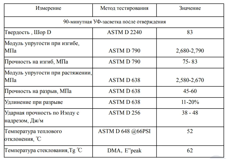 - Смола обладает средней вязкостью, за счет этого обеспечивается качественное повторное нанесение в процессе печати и быстрая очистка поверхности после изготовления объекта.