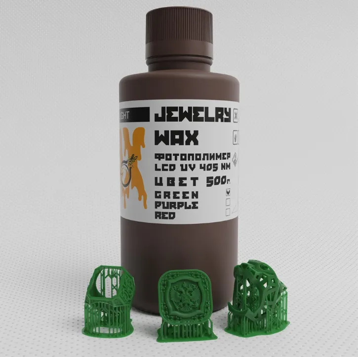 Фотополимер HardLight Jewelry WAX - специальный фотополимер, содержащий до 80% воска. Позволяет печатать модели, сравнимые с воском по качеству выжигания. При правильной постобработке и выжигании позволяет получать отливки с минимальной доработкой