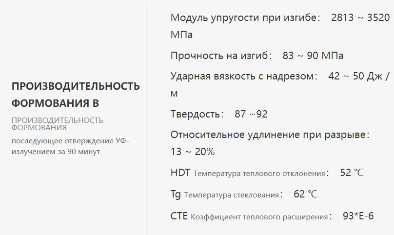 • Средняя вязкость жидкой смолы позволяет легко наносить повторное покрытие, легко очищать детали и оборудование;• Требуется минимальная обработка деталей;