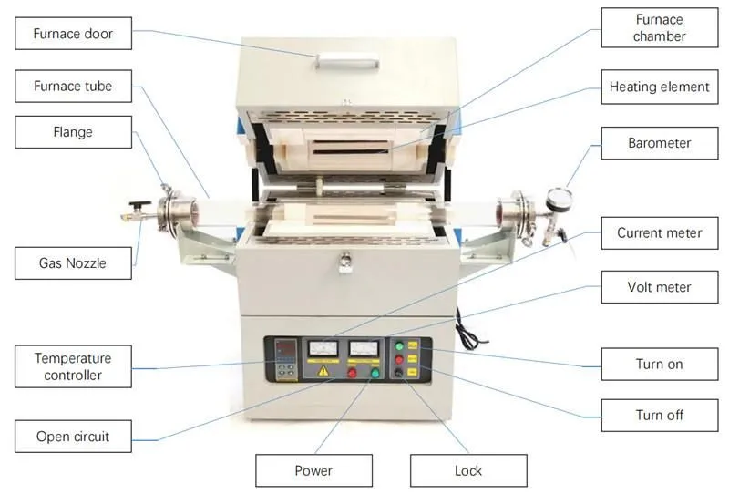 Труба печи проходит посередине камеры печи. Два конца трубы печи герметично закрыты нержавеющими стальными фланцами. Образцы обрабатываются в трубе печи. Нагревательный элемент и труба печи расположены параллельно и равномерно вокруг трубы печи, что эффективно обеспечивает однородность температурного поля.