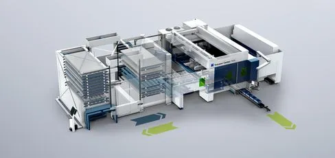 Используйте весь потенциал производительности своего станка: при привязке TruLaser Center 7030 к складу станок круглосуточно снабжается сырьевым материалом и может отправлять на хранение готовые детали.