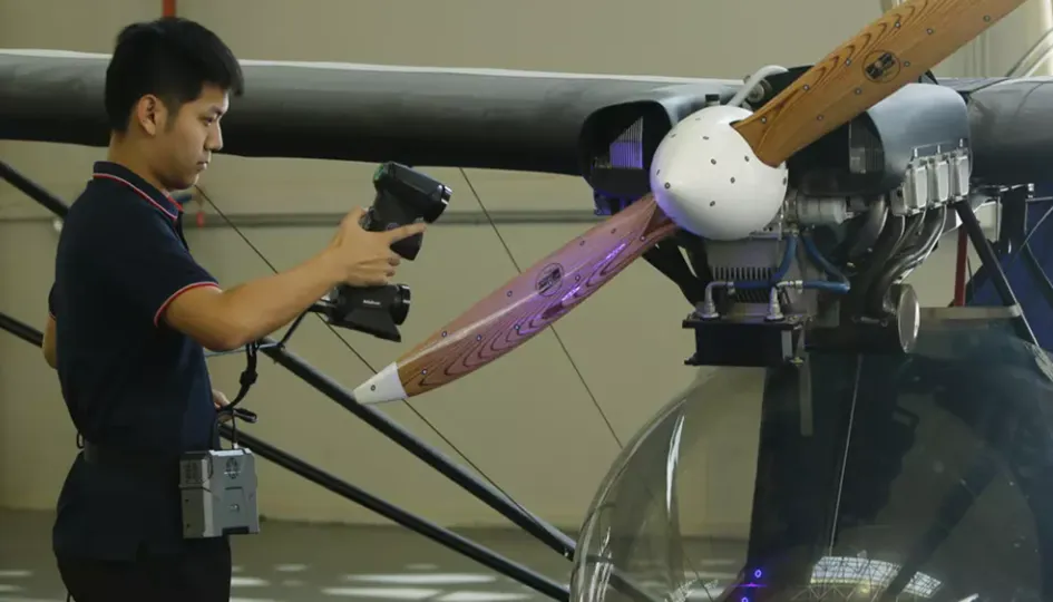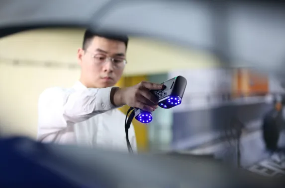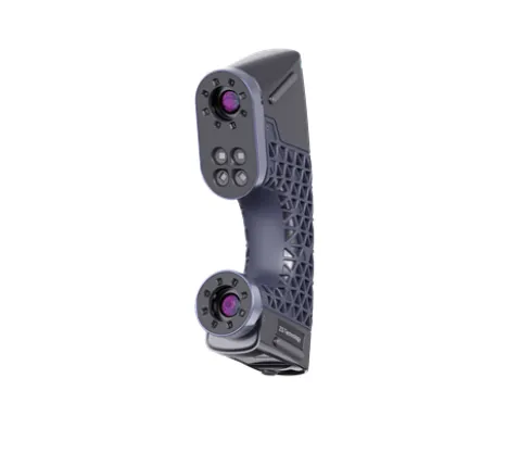 Методика оптической фототриангуляции лежит в основе процесса сканирования. Для распознавания контуров объекта используются две камеры, фиксирующие размещение 26 лазерных лучей синего цвета, которые сканер направляет на его поверхность. Эта система, в основе которой лежит синий лазер, обеспечивает высокую гибкость в работе с различными типами поверхностей, включая блестящие и матово черные, что исключает необходимость их специальной подготовки перед сканированием. Скорость процесса достигает 2 480 000 измерений каждую секунду, при зоне сканирования 600х550 мм. При этом портативность устройства не страдает: его вес составляет всего 600 грамм, а габариты — 215х95х45 мм.