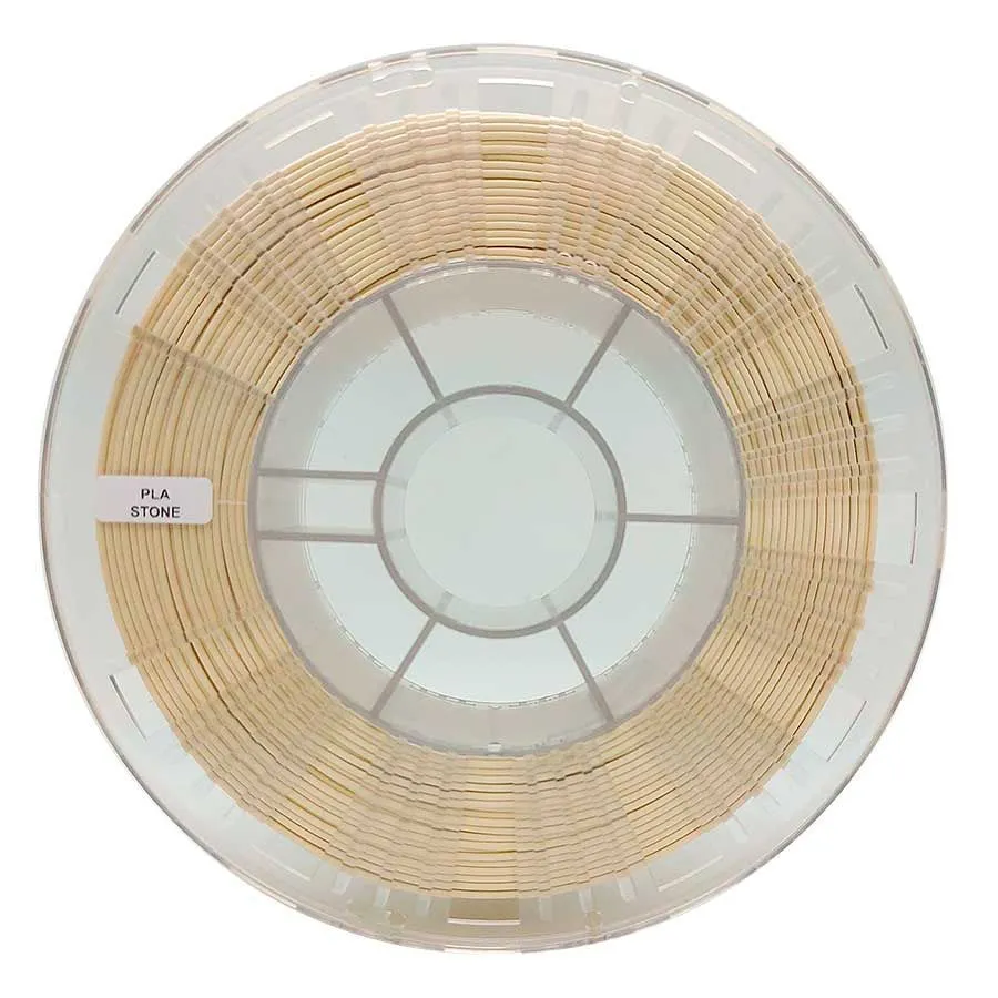 PLA Stone - ПЛА наполненный диоксидом титана, благодаря чему готовое изделие преобретает внешний вид и фактуру и тактильно становится похожим на гипс/песчаник/мел. Засчет "композитности" скрывает слои печати, после вышкурки деталь выглядит практически монолитной. Шкурить желательно с водой, чтобы от нагрева пластик не "скатывался".