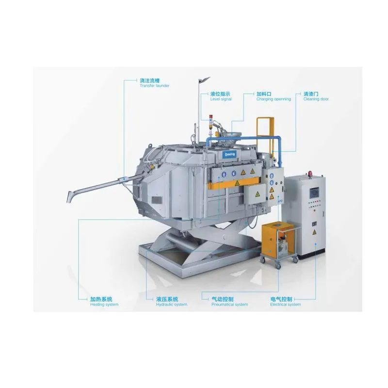 Пневматическая дозирующая печь DMING может напрямую подавать расплавленный алюминий в машину для литья под давлением или гравитационную форму без каких-либо загрязнений. При необходимости транспортировки расплавленного алюминия, в полости печи образуется избыточное давление. Сначала увеличивают высоту расплавленного алюминия в стоячей трубе до тех пор, пока расплавленный алюминий не начнет переливаться через край. Когда машине для литья под давлением требуется расплавленный алюминий, давление в полости печи увеличивается, вызывая вытекание расплавленного алюминия. Как только он достигает заданного количества, давление снижается, чтобы прекратить количественный анализ. После завершения количественной оценки высота расплавленного алюминия предварительно повышается до высоты выгрузки, и ожидается следующая работа по количественной оценке.