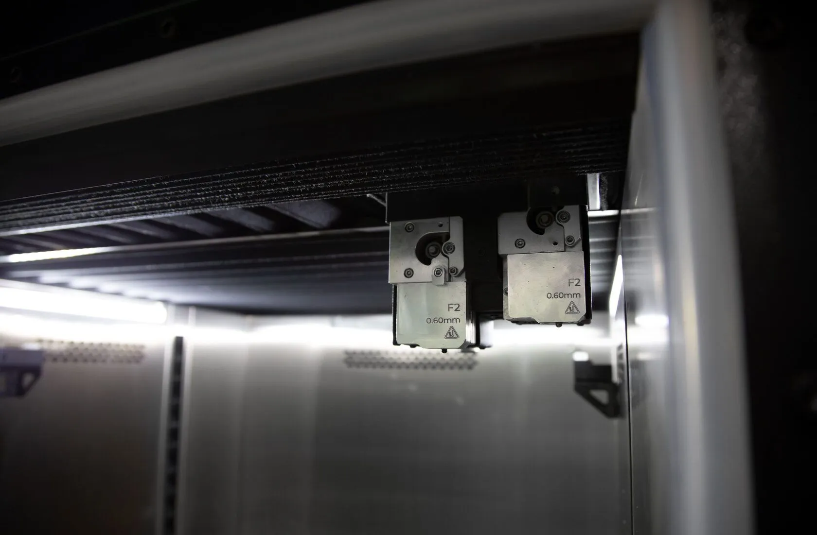 3D принтер F2 Quart Pellet оснащается гранульным экструдером с технологией трёхзонного нагрева и максимальной температурой 450 градусов. Это обеспечивает равномерный прогрев материала, высокое качество смешивания и оптимальные параметры выкладки материала. Всё это обеспечивает наилучшее качество печати. FGF-экструдер работает с соплами диаметром 1,5, 3, 5 и 8 мм.