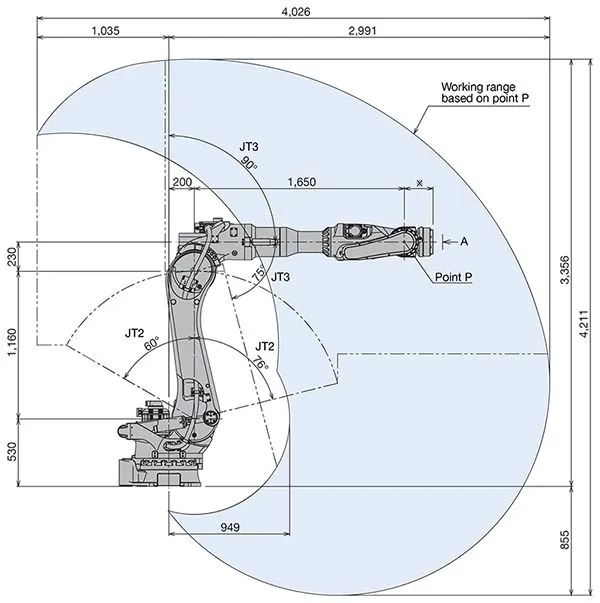 | Рука вверх-вниз (JT3) | +90 - −75 | ||