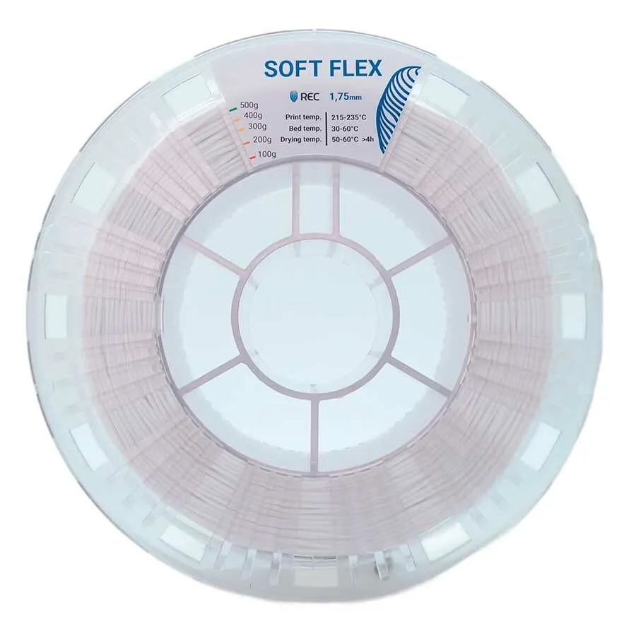Материал REC Soft Flex (TPU-A70) является самым гибким и долговечным из всех полимеров в ассортименте REC. Его высокая устойчивость к маслам, щелочам, бензинам и определенным кислотам, а также его прекрасная прочность при растяжении и изгибе делают его идеальным выбором. Материал обладает отличной износостойкостью, хорошо переносит низкие температуры и устойчив к высоким нагревам. При этом он почти не подвержен старению под воздействием ультрафиолетовых лучей (красители могут деградировать, но физико-механические свойства самого материала сохраняются). REC Soft Flex также демонстрирует прекрасную стойкость к морской воде, жирам и не подвержен воздействию микробов или бактерий.