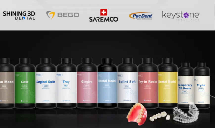 SHINING Dent предлагает разнообразие материалов для стоматологической 3D-печати таких моделей как коронки, шаблоны для операций, зубные модели и другие изделия, всего доступно 11 смол на выбор. Компания также сотрудничает с известными производителями материалов для стоматологии, что расширяет возможности выбора и обеспечивает гибкость в работе с материалами.