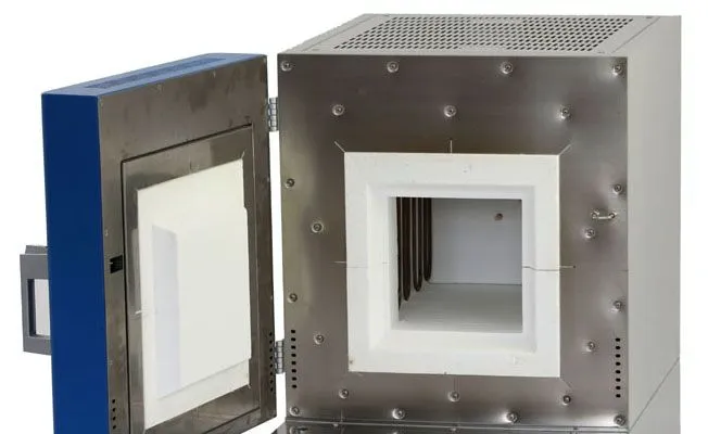 Лабораторная муфельная печь 1200°C, оснащена нагревательным элементом из проволоки высокого сопротивления.