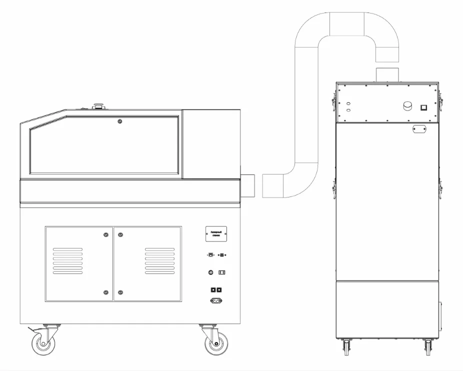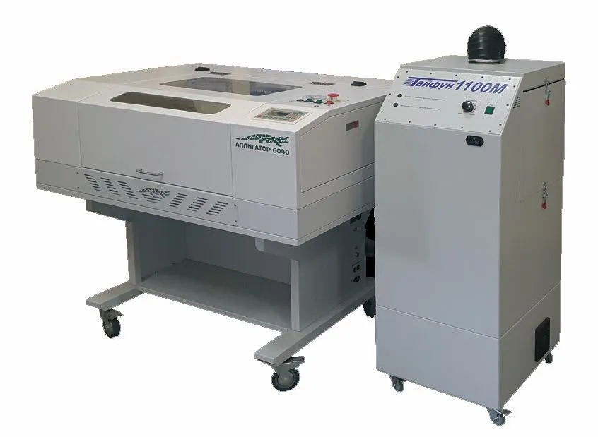 Для обеспечения безопасности окружающих и сохранения оборудования в хорошем состоянии, а также для создания экологически чистого производства, требуется установить систему фильтрации и дымоудаления из рабочей зоны лазерного станка. Вытяжная установка Тайфун-1100М - специализированное оборудование, предназначенное для фильтрации и удержания вредных веществ, образующихся в процессе горения при лазерной резке, гравировке и маркировке изделий в процессе производства.