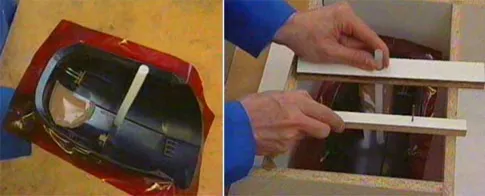 армируют металлическими элементами глубокие пазы и наносят клейкую ленту на будущую